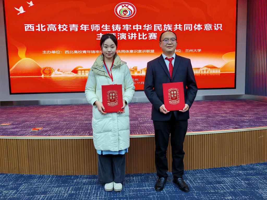 此次演讲比赛中,汇聚了来自17所西北高校的30名选手。参赛师生围绕铸牢中华民族共同体意识主题,不同角度切入,用真挚的情感和生动的语言讲述发生在身边的民族团结感人故事。我校信息工程与人工智能学院专职辅导员陈千进荣获教师组三等奖,农林经济管理学院学生李璇荣获学生组三等奖。