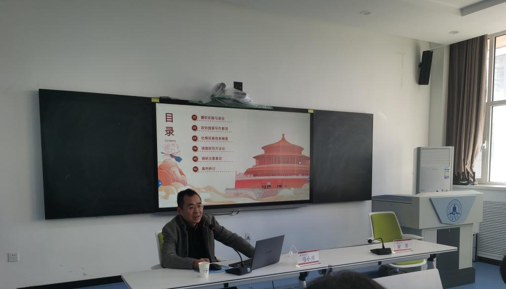 为深入学习贯彻中共二十届四中全会精神,进一步提升学校党外知识分子综合能力素质。12月2月,党委统战部特邀请省政协委员、定西市政协副主席,民进定西市委会主委马小兵,在段家滩校区博源楼302教室为我校党外知识分子作《练好调查研究基本功提升资政建言水平》专题讲座。讲座由校统战部常务副部长宋芳主持。