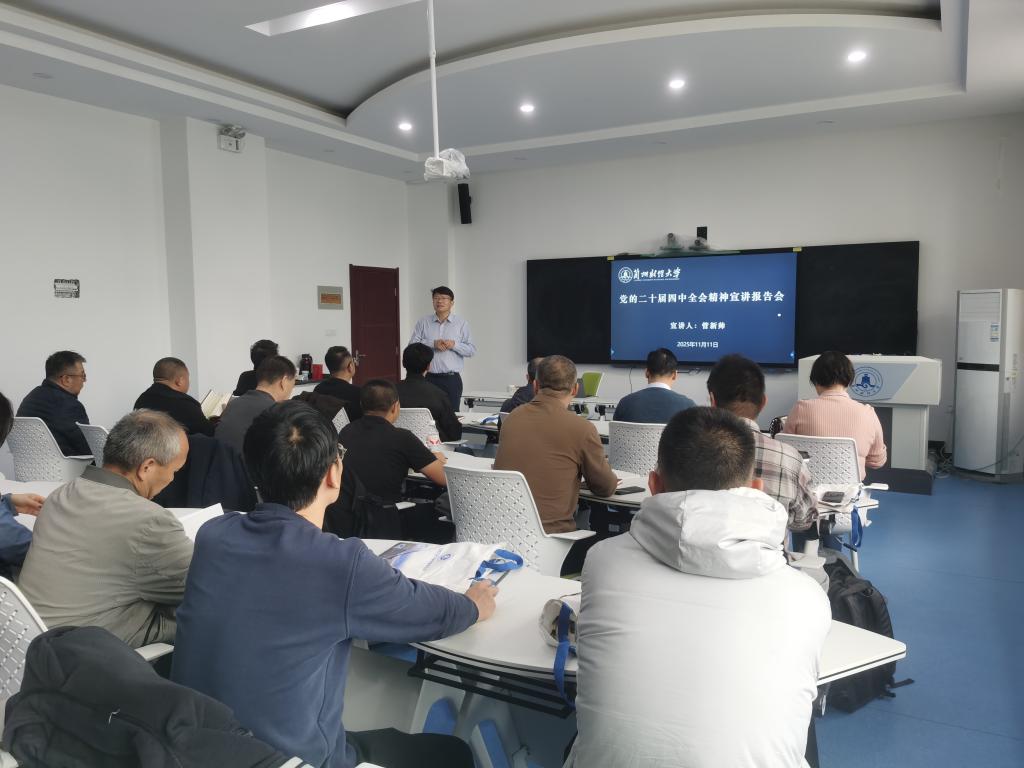 为深入学习贯彻党的二十届四中全会精神,切实把党外知识分子的思想和行动统一到全会精神上来,11月11日,校党委常委、副校长,党委统战部部长管新帅在段家滩校区博源楼302教室向学校党外知识分子专题宣讲二十届四中全会精神。