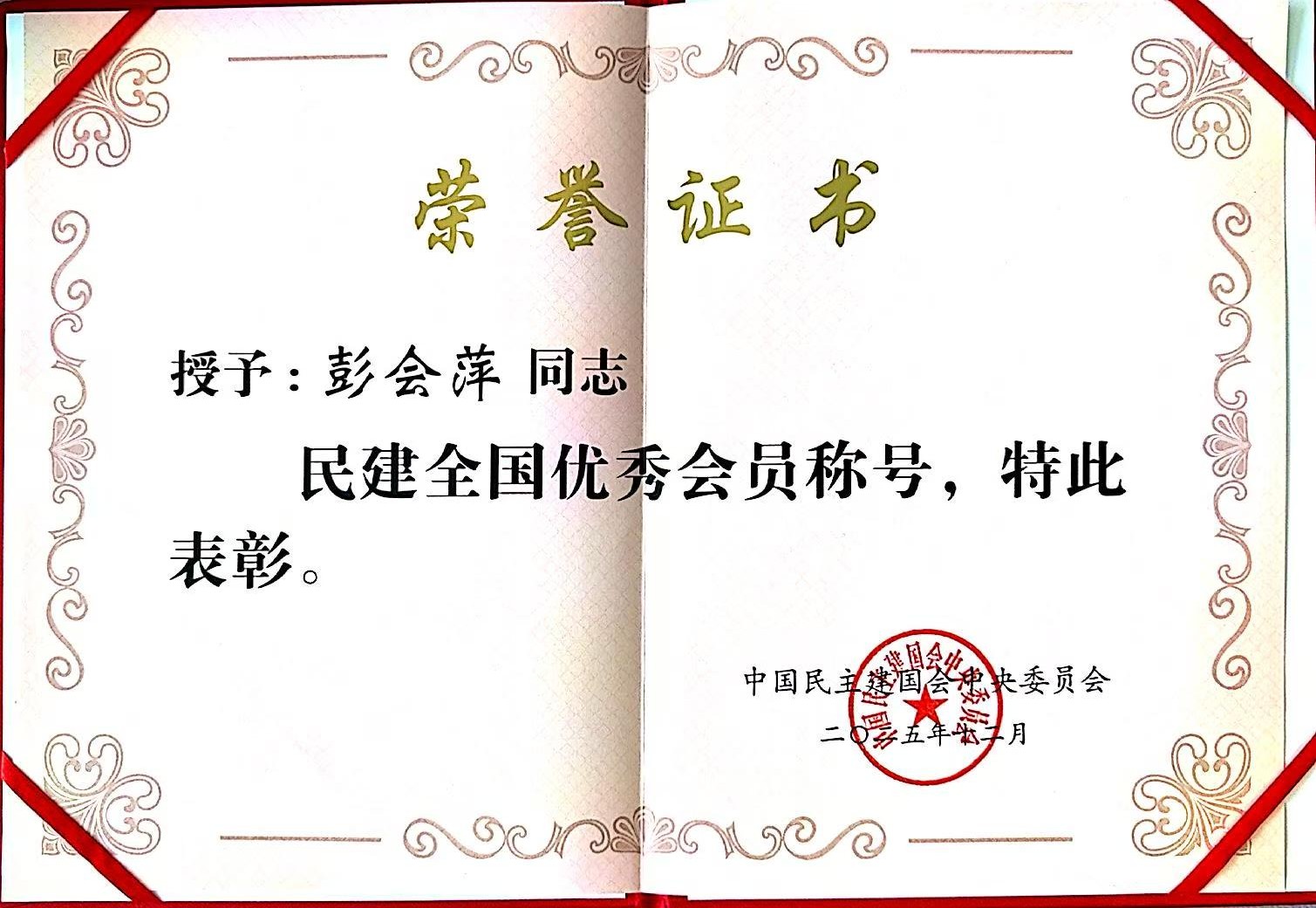 在中国民主建国会成立80周年之际,我校信息工程与人工智能学院彭会萍教授被民建中央授予“民建全国优秀会员”称号。